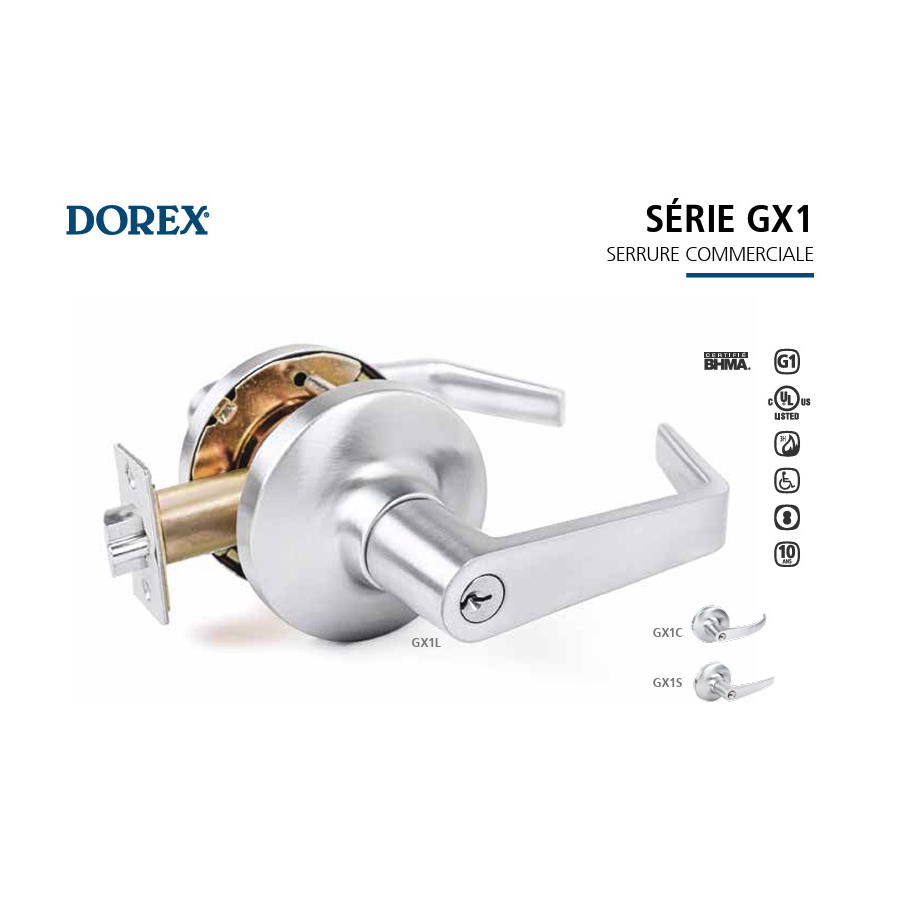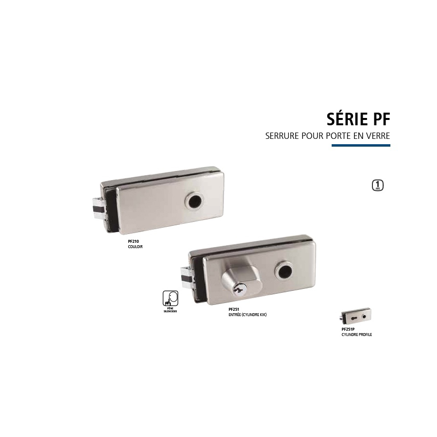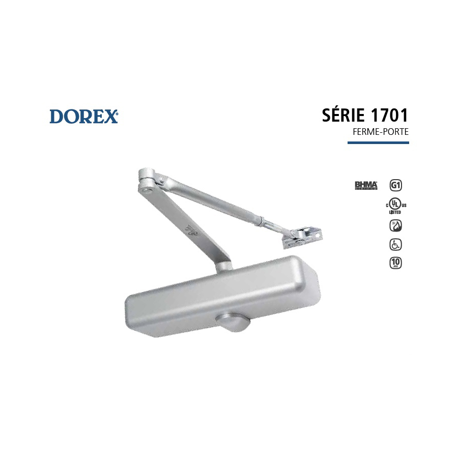 POIGNÉES ET VERROUS SA8200-D1 Poignée échelle 60 pouces avec verrou au sol HD104 Poignée échelle 24 ou 48 pouces PF210 et PF251 Serrure a levier pour porte de verre GDLCSOUTR Poignée commerciale GDLCELECSTKL Boîte gâche électrique AMR205 Serrure au sol RUTH-AL65U Gâche électrique GX1 Poignée levier pour porte de bois Plaques de suspension, pivots et charnières PF100 Pivot hydraulique PF120 Plaque de suspension supérieure PF150 Plaque de suspension pour ferme-porte encastré PF121 Plaque de suspension supérieure élargie PF110 Plaque de suspension inférieure PF140 Plaque pivot d’imposte PF160 Plaque de butée d’imposte PF130 Plaque murale pivot 1NT403 Pivot de sol ajustable TWP Paumelle pour porte de bois 8700A-9A Charnière pour porte de verre DLUX4D35L rail de porte avec verrou DLUX4D35 Rail de porte Fermes-portes PF100 Pivot hydraulique 1701 Ferme-porte de surface CRL9760 Ferme-porte encastré ajustable avec retenue a 90 degrés CRL9762 Ferme porte encastré réglable sans retenue NABCO Opérateur de porte automatique Autres quincailleries 3530 Butoir au sol SA8300A-5A Guide de porte coulissante E25P546XX Seuil tombant pour porte battante E25P9514X Seuil tombant pour porte coulissante T100-MAG Pêne magnétique